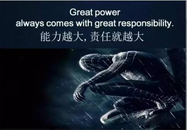 在好萊塢大片中有這樣一句話,叫能力越大,責(zé)任越大;